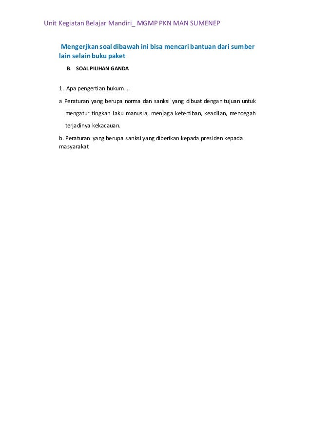 Maybe you would like to learn more about one of these? Contoh soal pilihan ganda sistem hukum dan peradilan di indonesia. We did not find results for: Check spelling or type a new query.